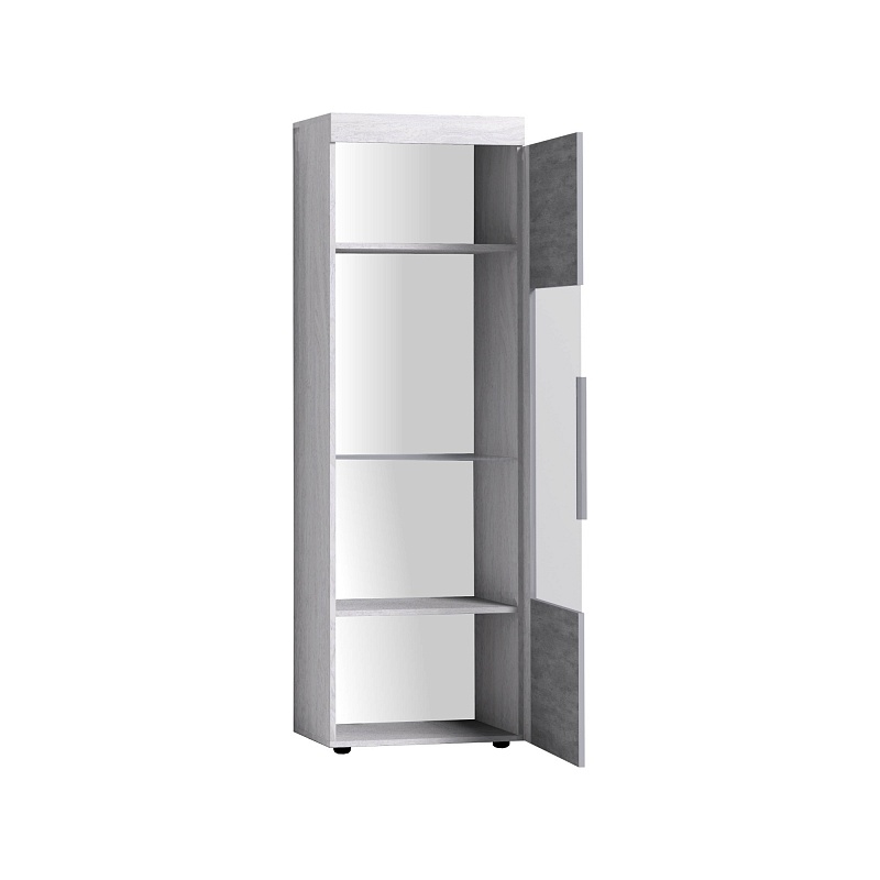 Если вы считаете, что хранить в гостиной посуду уже не модно, шкаф со стеклянной дверцей и стеклянными полками станет отличной витриной для дорогих и любимых фотографий и памятных вещиц. Стеклополки в обработке еврокромкой выдерживают до 10 кг каждая.