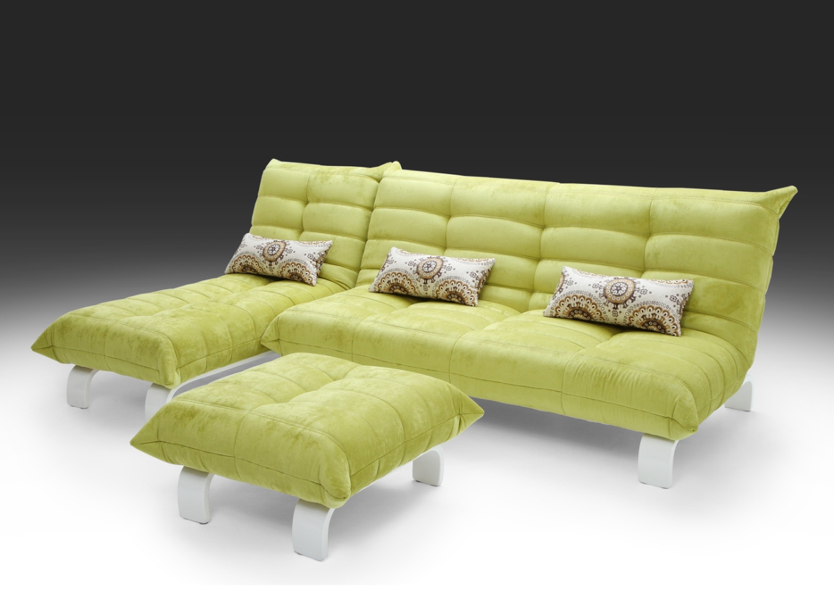 Необычный угловой диван, состоящий из дивана-книжки и оттоманки. Благодаря минималистическим формам он органично вписывается в современные интерьеры. А изогнутые деревянные ножки сделают его «своим» даже в помещениях, оформленных в классическом стиле. Диван может быть как единым целым, так и трансформироваться в набор из дивана, кресла и пуфа, который также способен выполнять роль оригинального журнального столика.