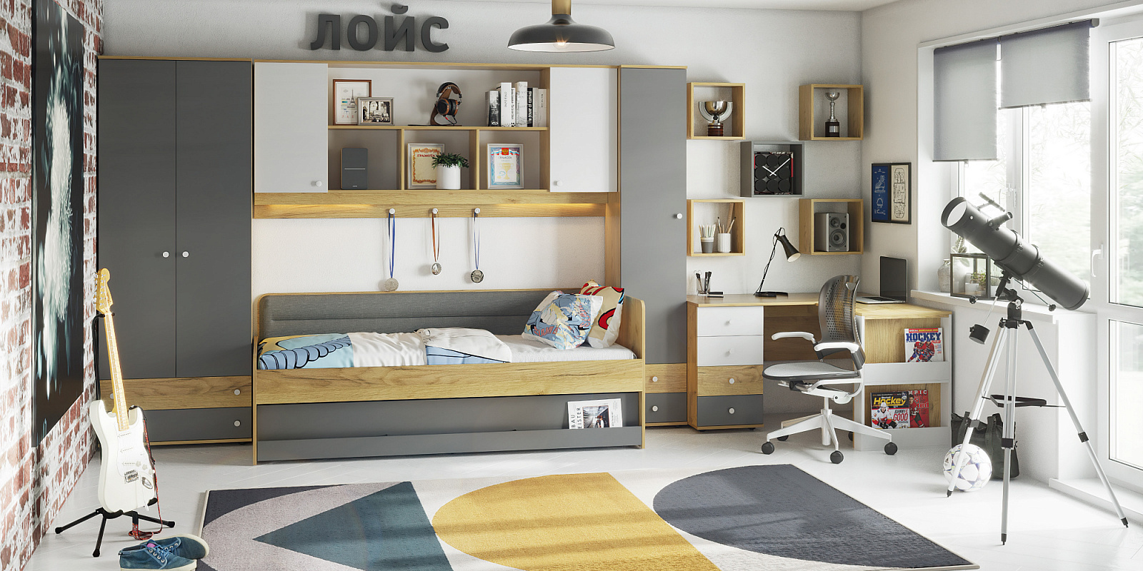 Материал: ЛДСП Дуб золотистый/Графит/Белый.