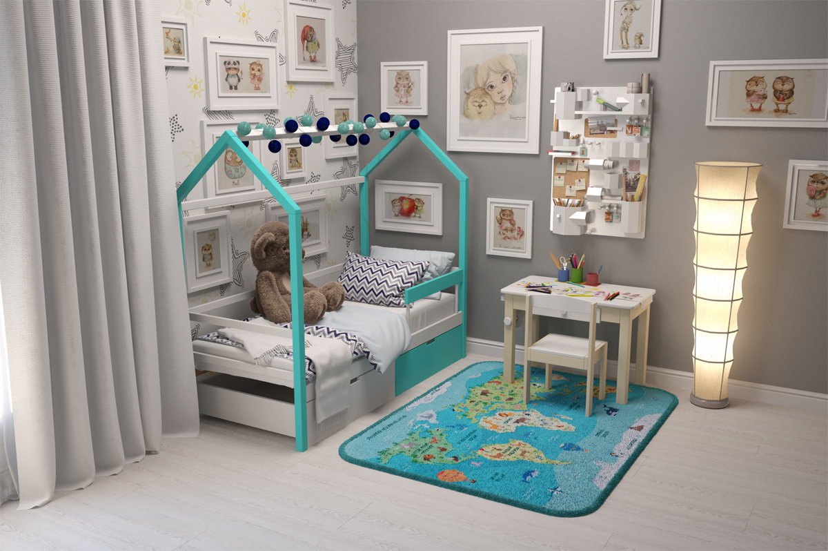 Кровать-домик легко превращается в целый замок для игр с помощью разноцветных тематических игровых накидок. Текстильная крыша на домике создаст ребенку уют и защищенное пространство.