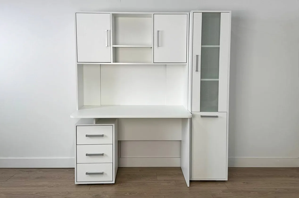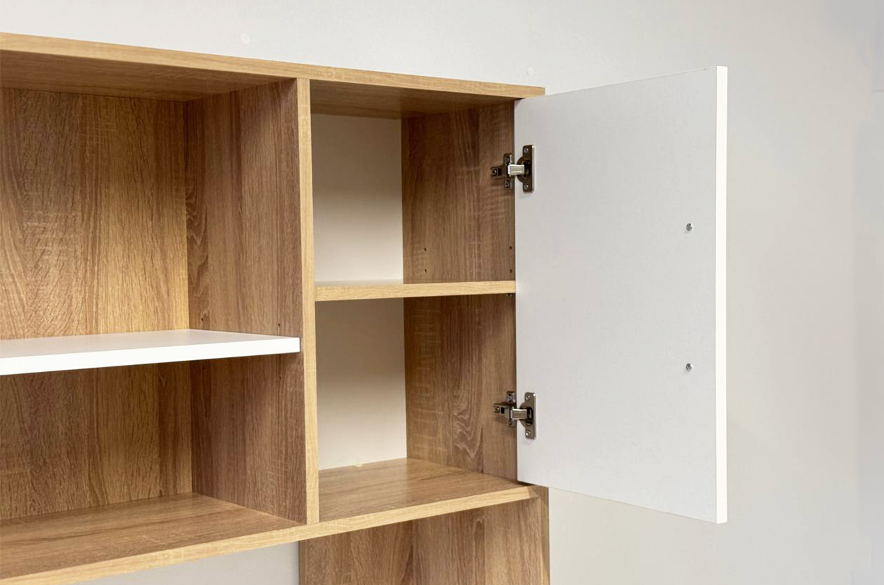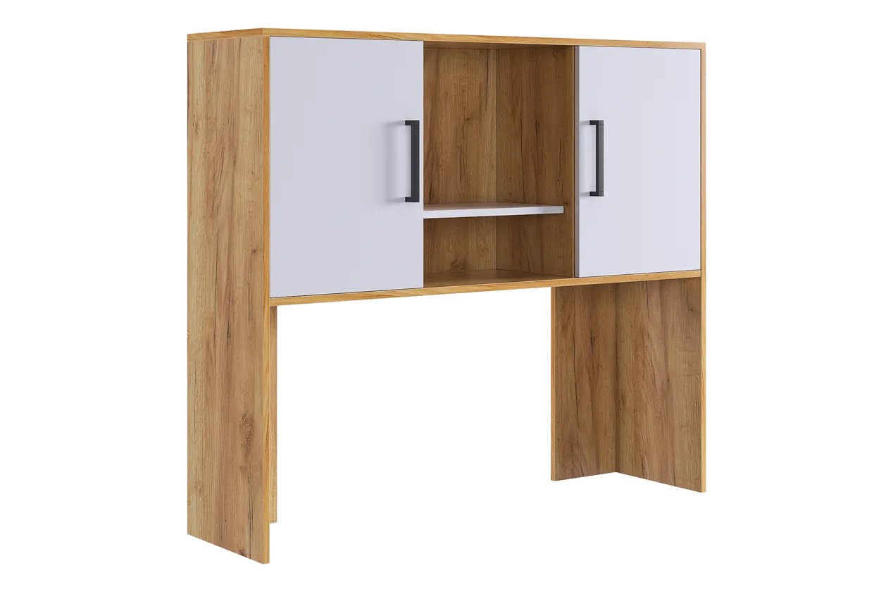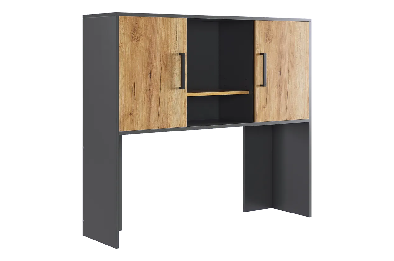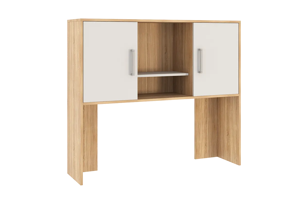 Надстройка Лайт-2 является универсальным дополнением к компьютерным столам. Она оборудована нишами для важных мелочей и шкафами для канцелярии, что делает ее не только практичной, но и стильной.