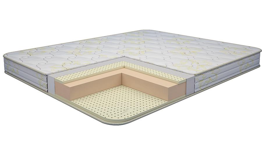 Матрас с ортопедическим эффектом на основе монолита ортопедической пены и упругого эластичного латекса, который анатомически поддерживает позвоночник во время сна и отдыха.