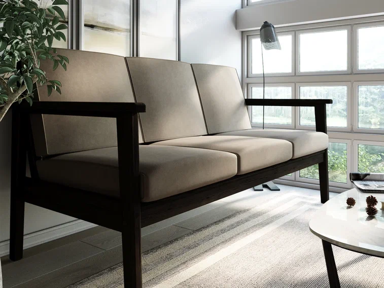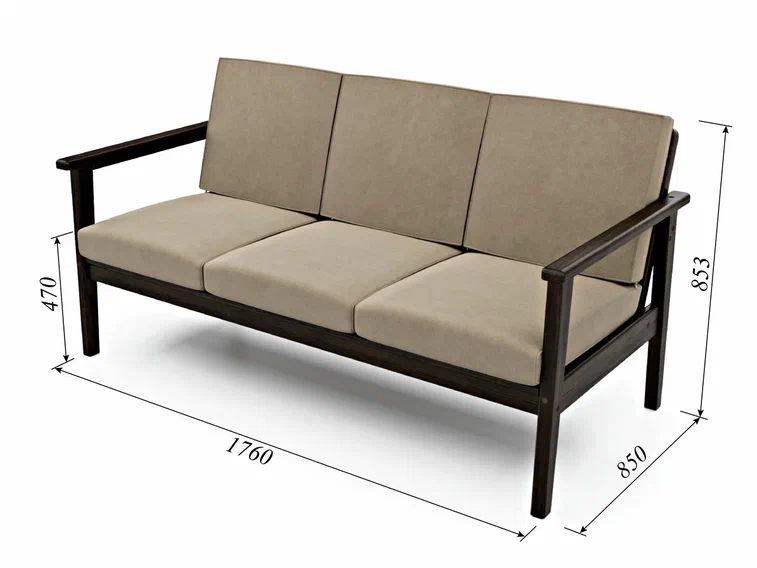 Комплект поставки: Каркас массив сосны, три подушки сиденья, три приспинные подушки