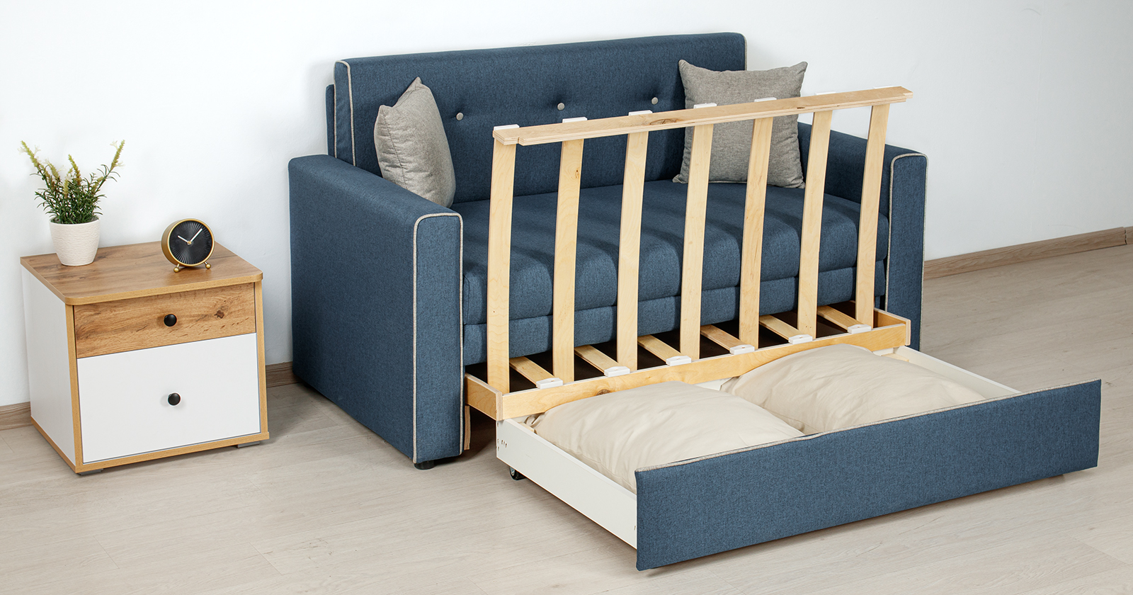 Диван-кровать Найс - компактное современное решение для гостиных, квартир-студий, детских и подростковых комнат. Может использоваться в качестве постоянного спального места для детей и подростков или гостевого спального места взрослого.