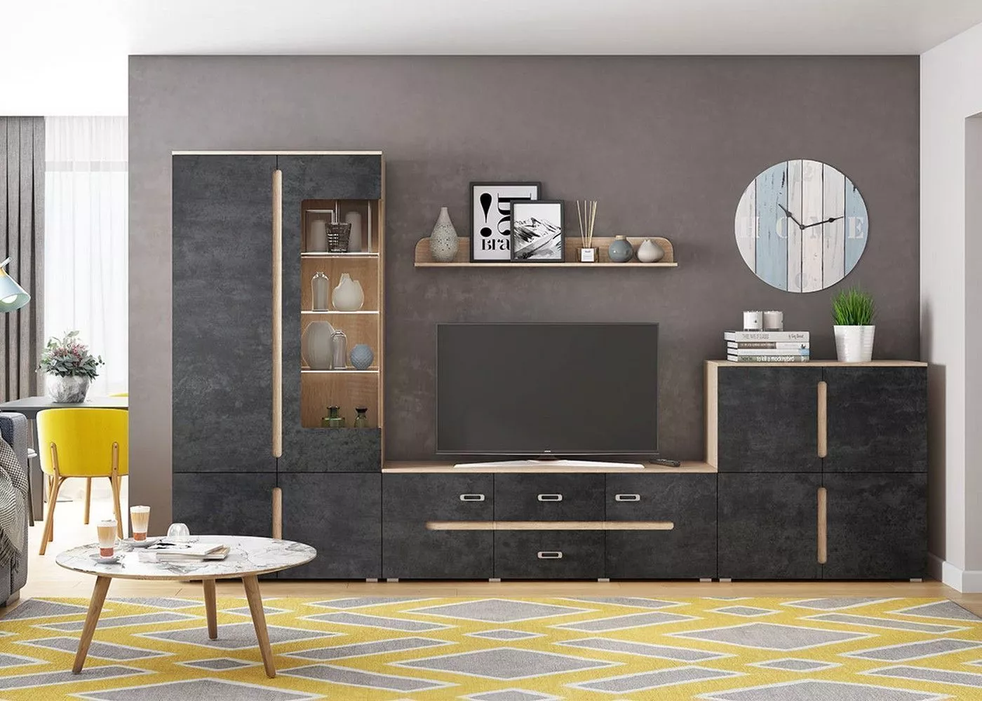 Шкаф с подсветкой "Ким" можно использовать в гостиной как витрину для размещения посуды, сувениров, декора или как книжный шкаф. Один из фасадов шкафа имеет стеклянную вставку. Шкаф комплектуется полками из стекла и ЛДСП.
