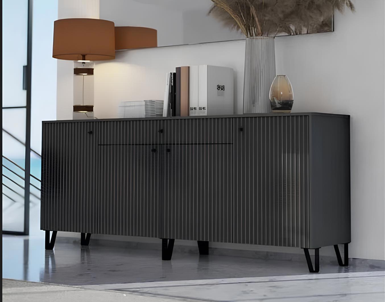 В комоде Оливия есть четыре вместительных отделения с полочками и выдвижной ящик. Именно поэтому в данном модуле можно разместить большое количество вещей. Этот модуль можно использовать как тумбу под телевизор, он отлично сочетается с другой мебелью из одноименной коллекции. Коллекция Оливия подойдет для создания стильной гостиной. Мебель с рифлеными фасадами - модный тренд в современном дизайне интерьеров. Необычный объемный декор привлекает внимание и кардинально меняет облик всей гостиной. Интерьер становится более фактурным, динамичным и самобытным. Рельефные фасады смотрятся естественно, задают пространству необходимый ритм. Такая фактура одинаково хорошо смотрится как в современном, так и в классическом интерьере. Размеры: (шхвхг) 2000х830х426 мм |