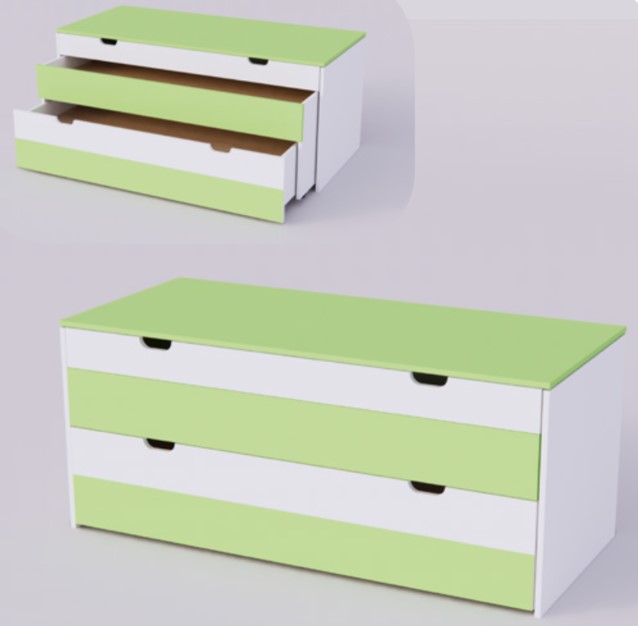 2-ярусная кроватка с выкатным механизмом станет решением для небольших спален в детском саду. В комплекте – съемная крышка-столешница.