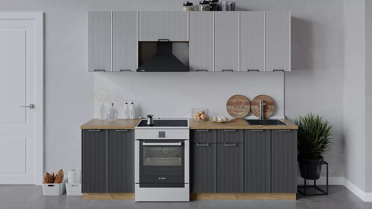 Габаритный размер готового набора модулей с учетом газовой плиты на 60 см: 240 см.