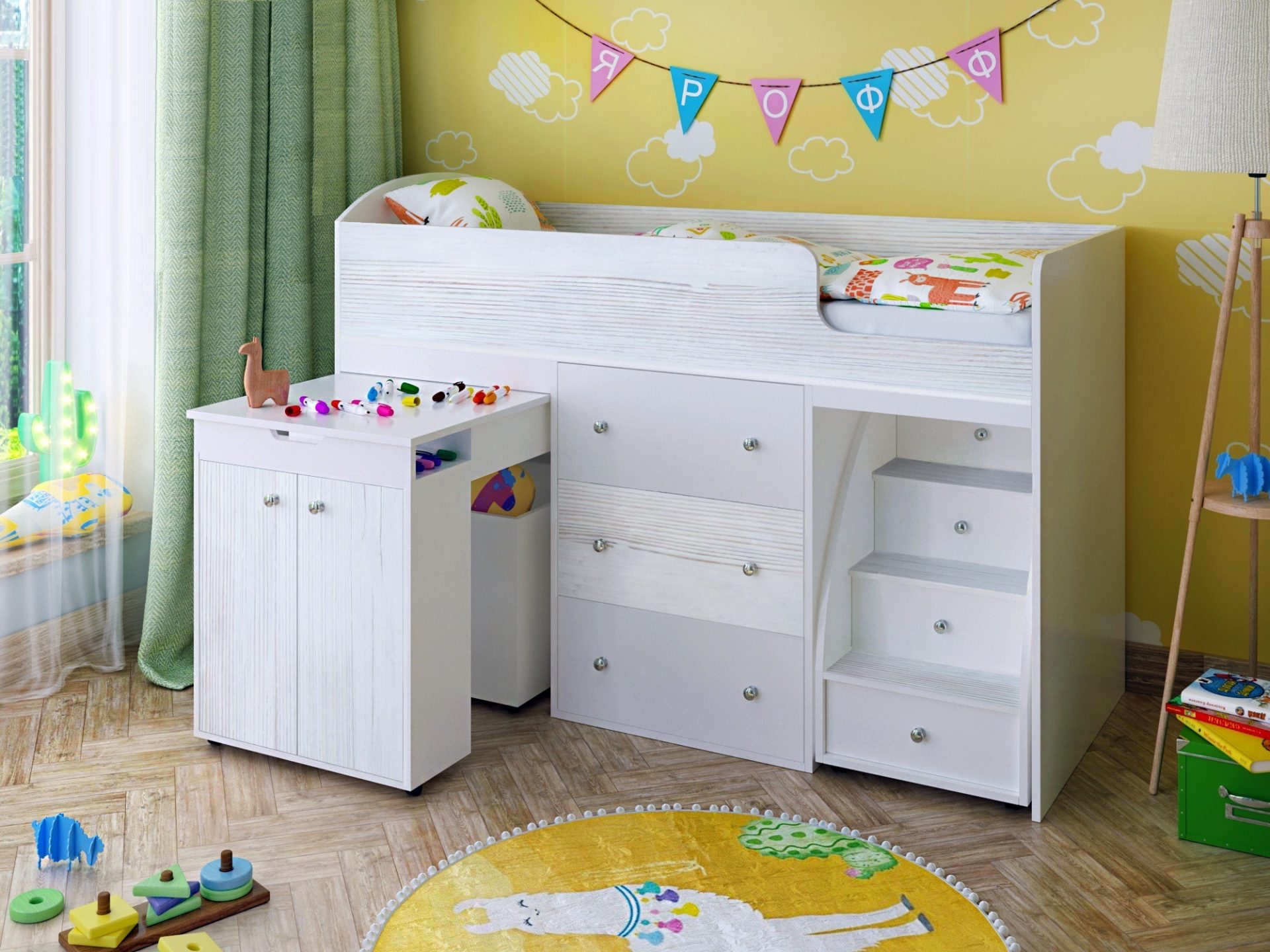 Стильная и красивая кровать-чердак от производителя ЯРОФФ представлена в разных цветовых сочетаниях, а потому позволит обустроить как комнату девочки, так и мальчика. Компактная выдвижная лестница с ящиками, ведущая на второй ярус к спальному месту, бережет пространство комнаты.