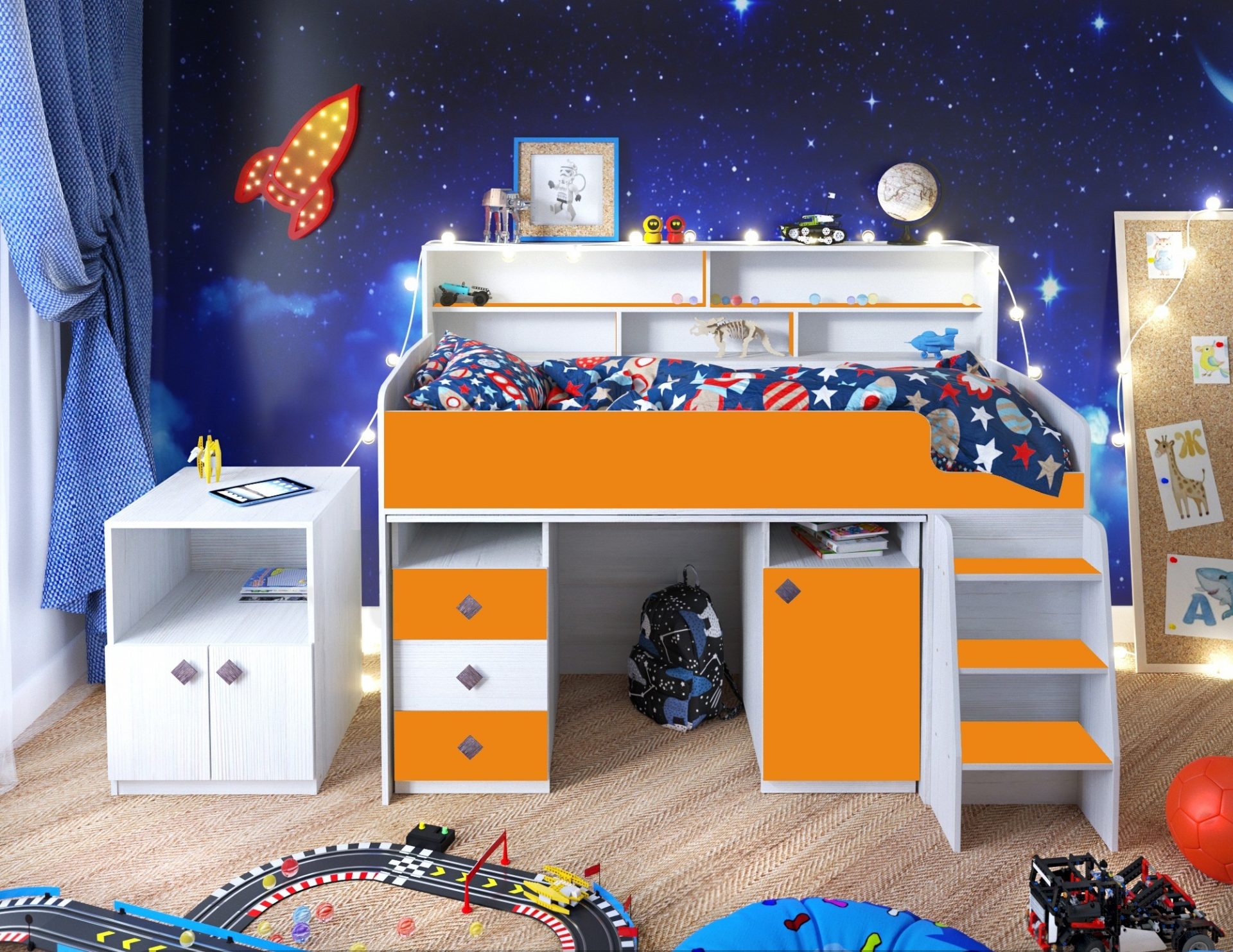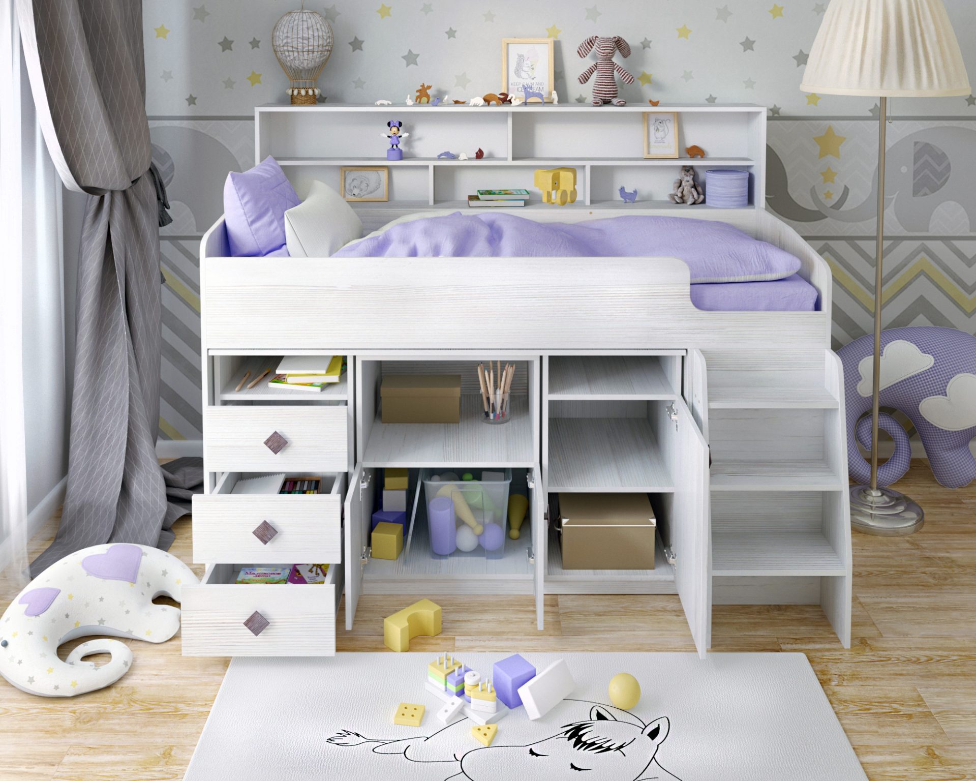 Магазин мебели «100Диванов» предлагает купить Кровать-чердак Малыш 5 с полкой в Радужном по выгодным ценам от производителя с доставкой.