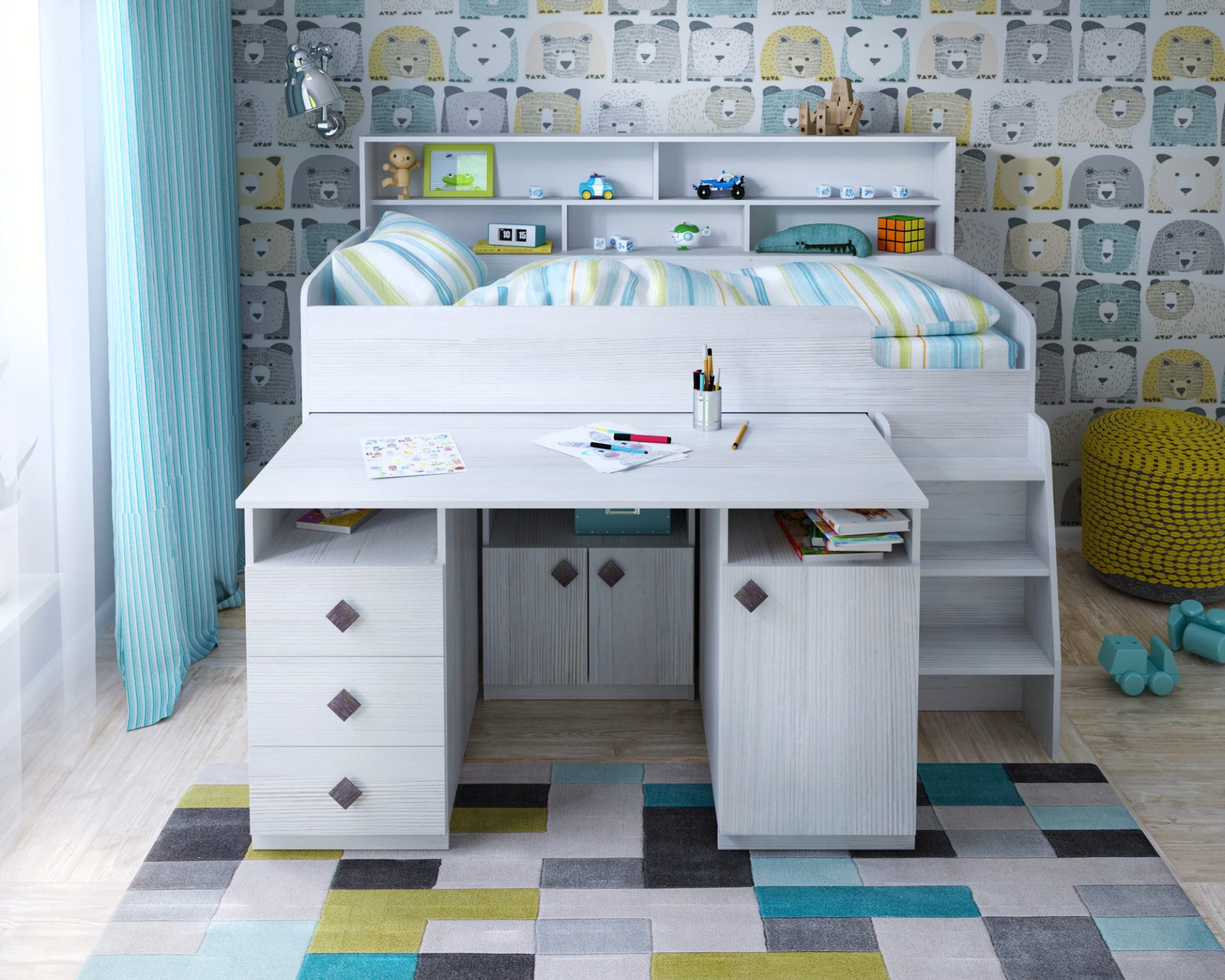 Кровать-чердак Малыш 5 прекрасно подойдет для обустройства детской комнаты разной планировки, ее можно одинаково установить и в малогабаритном, и в просторном помещении. Благодаря своей продуманной конструкции и габаритам, кровать-чердак «Малыш 5» станет отличным решением для создания уютного, стильного и, что самое главное, функционального пространства, она не займет много квадратных метров и не станет загромождать помещение.