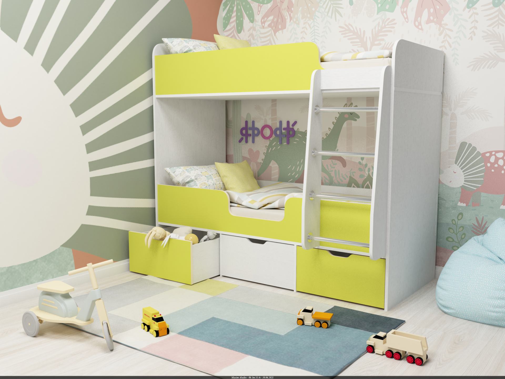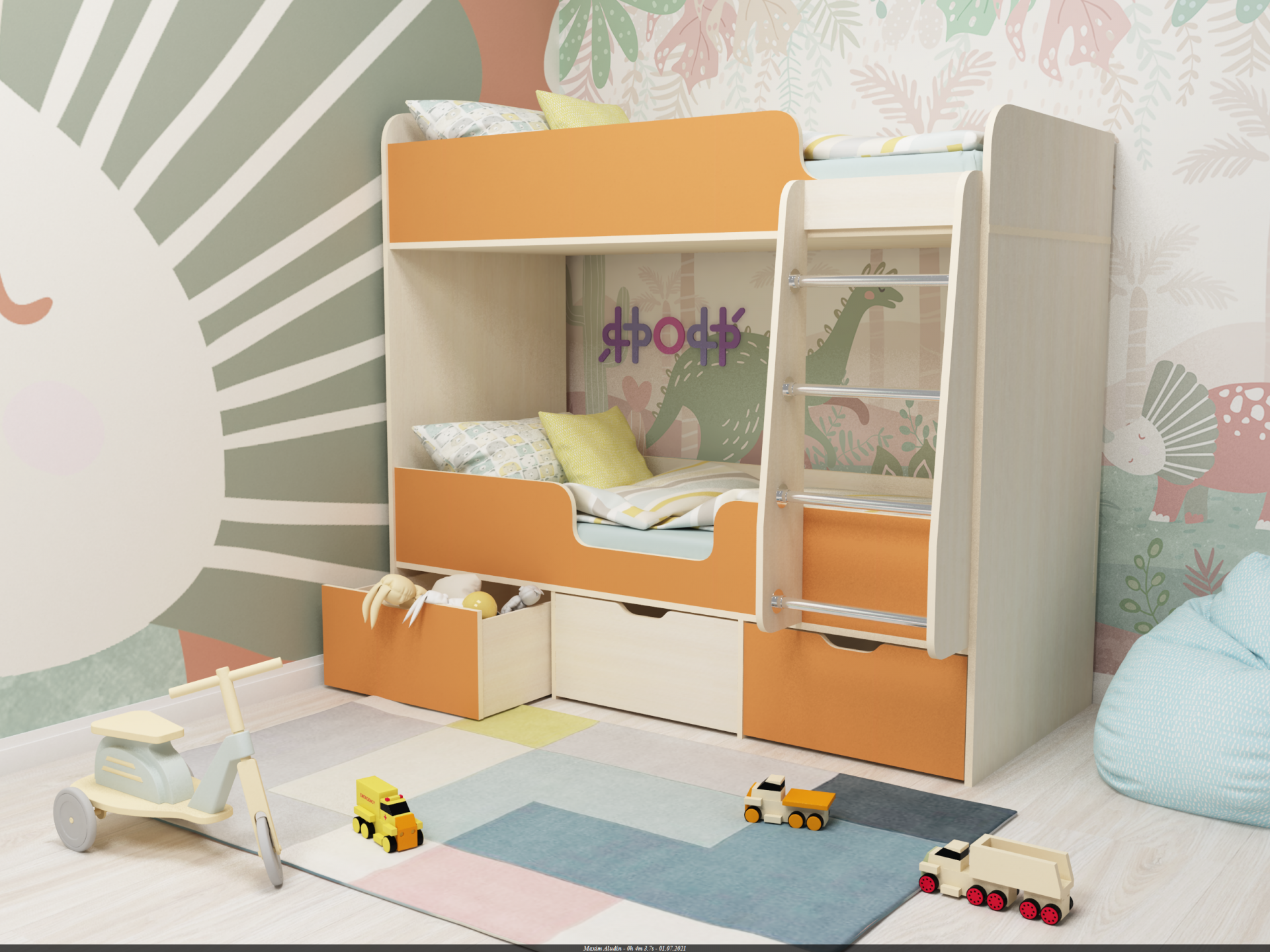 Если вы хотите обустроить детскую комнату для двух малышей, тогда обратите внимание на двухъярусную кровать «Малыш Двойняшка»: компактная модель вмещает в себе разу два полноценных спальных места, а также ящики, в которых можно разместить подушки, одеяла, одежду или игрушки ваших детей. То есть, поставив такую двухъярусную кровать в комнате, вы получаете на небольшой площади сразу две кровати и еще места для хранения, не загромождая пространство детской.