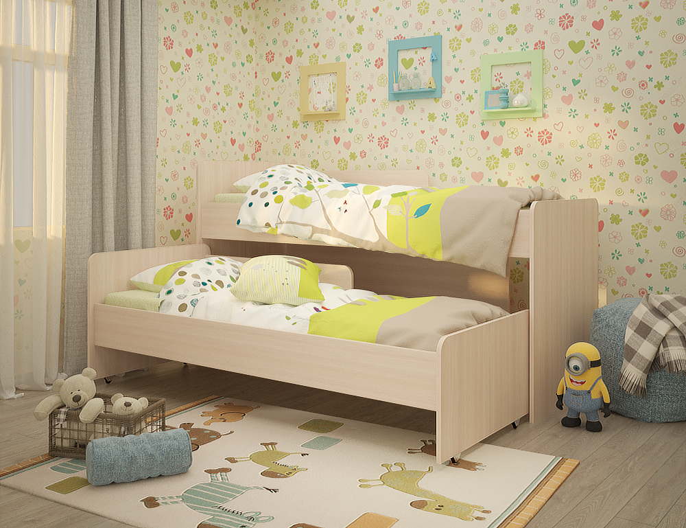 Магазин мебели «100Диванов» предлагает купить Кровать выкатная двухъярусная Радуга без ящика и бортиков в Радужном по выгодным ценам от производителя с доставкой.