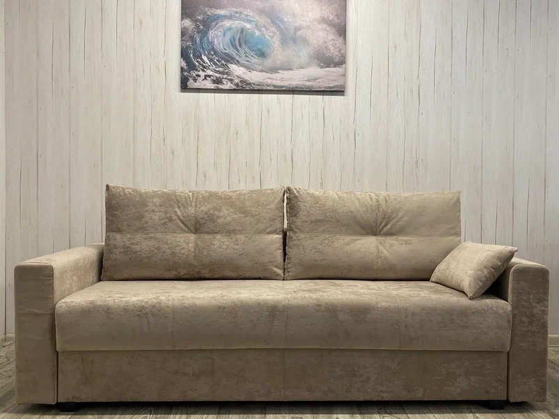 Невероятно удобный диван-кровать с надёжным механизмом раскладывания и просторным спальным местом. Вместительный короб для белья. Не требует отодвигания от стены при раскладывании.