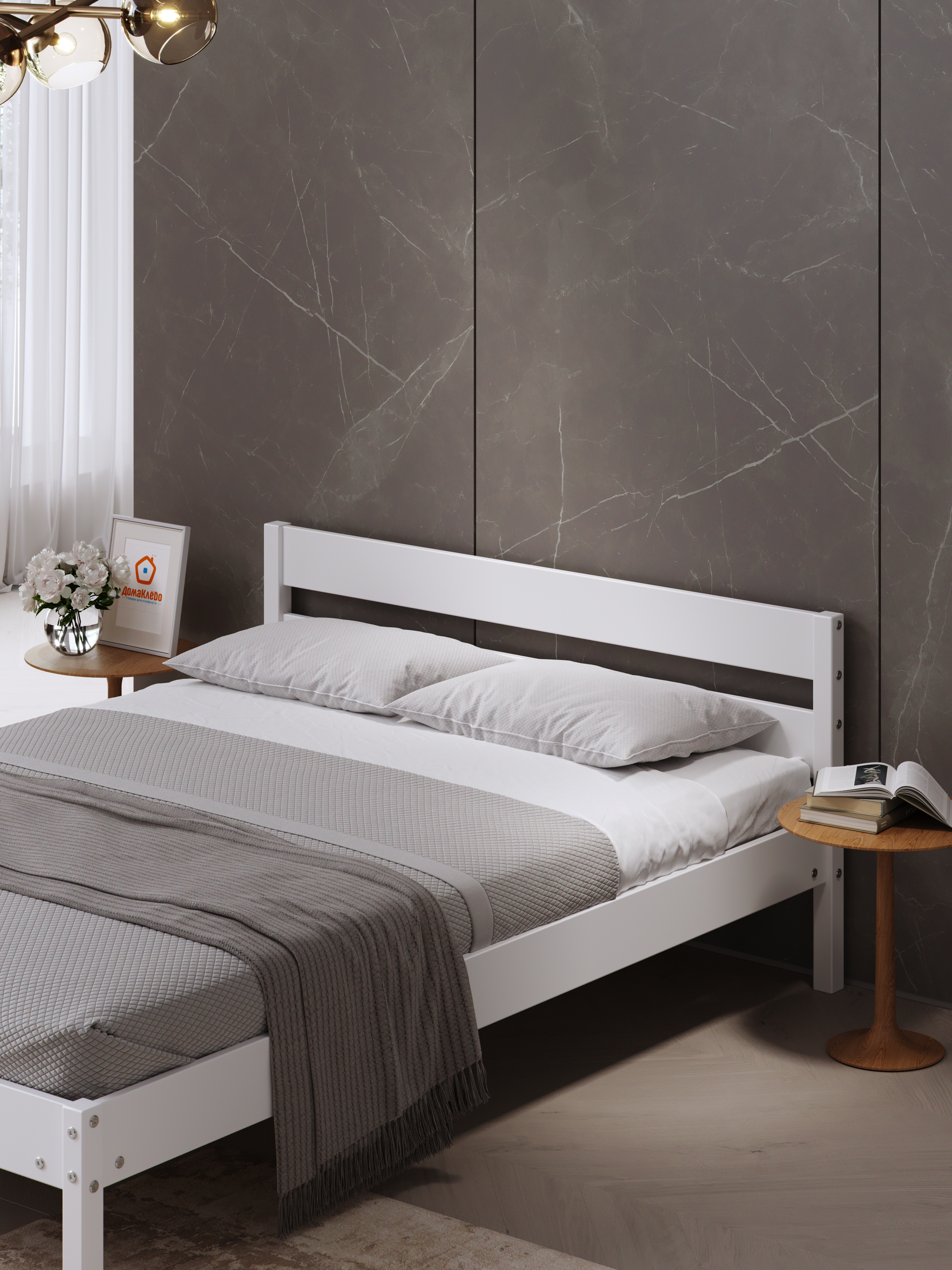 • Элементы кровати выполнены из массива берёзы. Основанием под матрас-прочные гнутоклееные березовые ламели.
