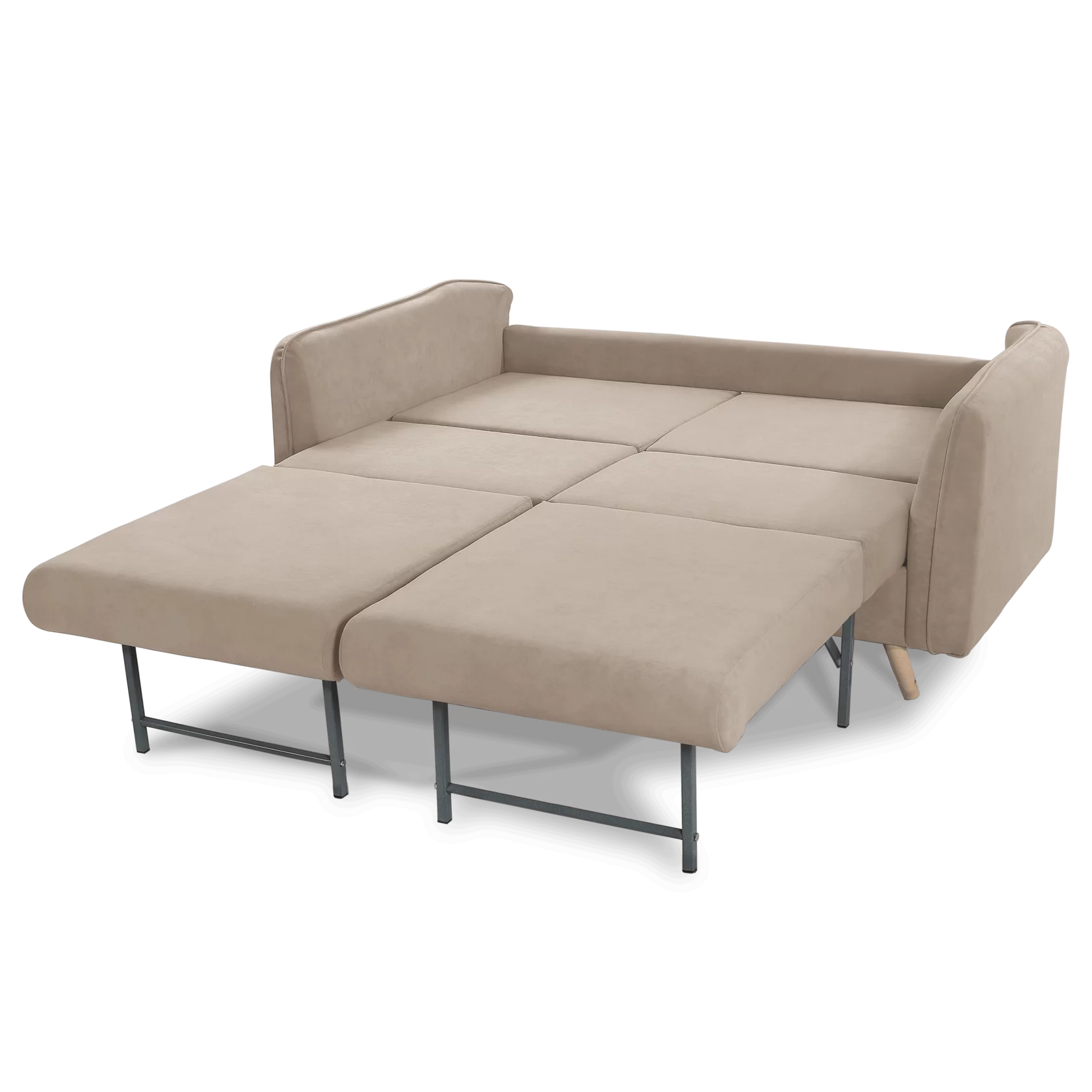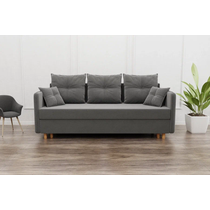 При своих компактных размерах диван очень вместительный. Он раскладывается в ровную монолитную поверхность для здорового сна, стыки между секциями не ощущаются. Для вашего удобства предусмотрены петли для раскладывания дивана. Узкие подлокотники зрительно подчёркивают его элегантность и экономят пространство. Высокие деревянные ножки с подпятниками из войлока обеспечивают защиту напольного покрытия и удобство для уборки роботу-пылесосу.