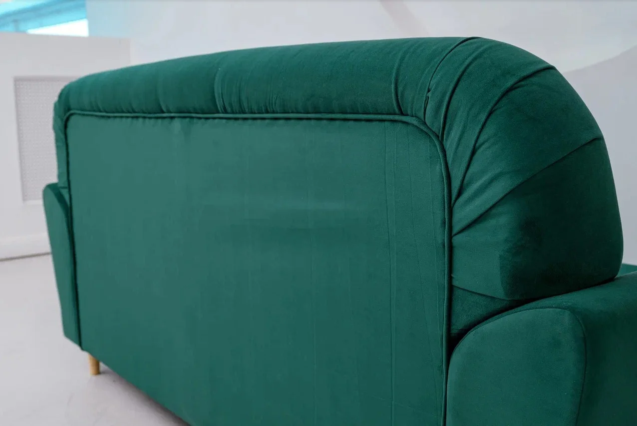 Без подменной ткани, велюром покрыта задняя спинка, что позволит использовать диван для зонирования помещения.