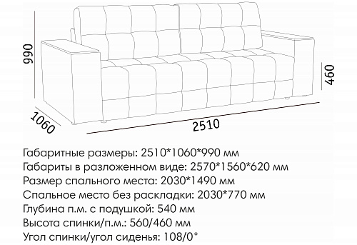 Оснащён механизмом трансформации «Пантограф», предназначен для ежедневного использования. Спальное место - ровное, без перепадов уровня.