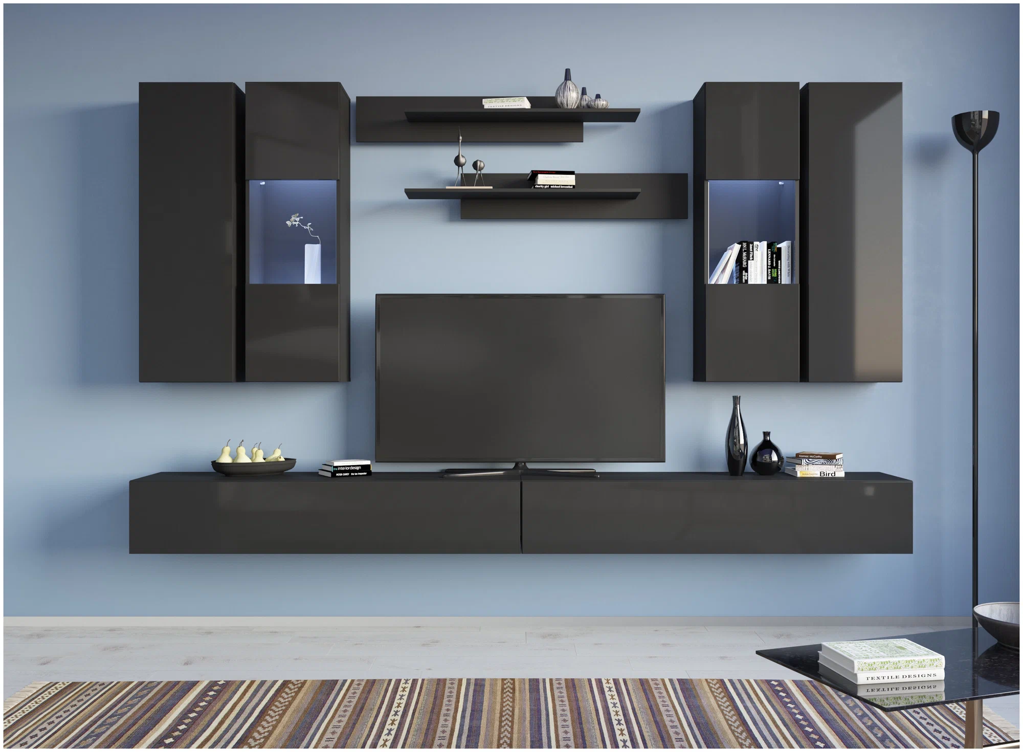 Шкаф-витрина Поинт удачно впишется в обстановку гостиной или спальни, предоставив полноценную систему для хранения книг, красивой посуды или предметов декора.
