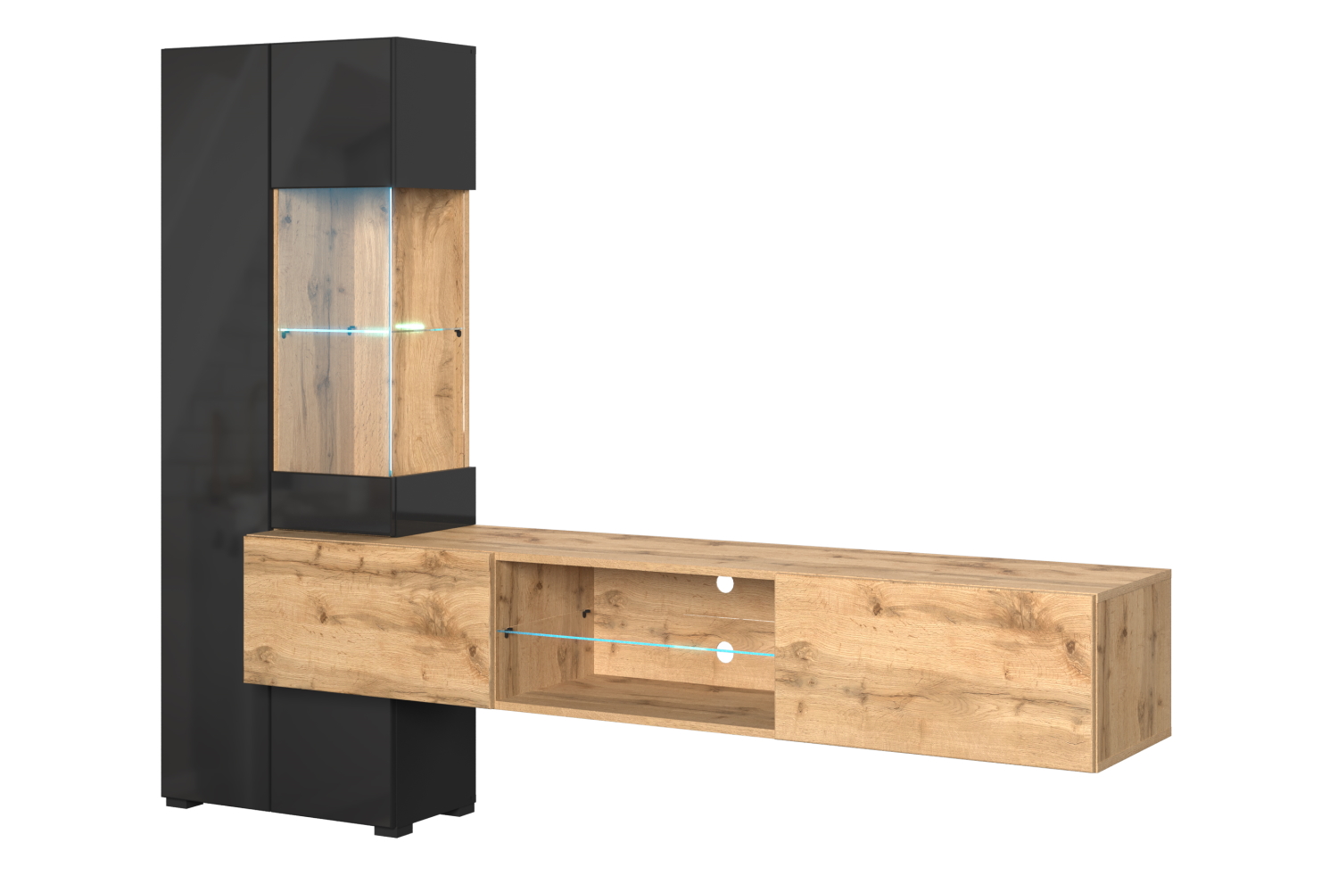 - В комплект гостиной входят ниша/тумба для ТВ, стенка и тумба под ТВ. - Ниша под ТВ имеет размеры 150 x 30 x 40 см, что позволяет разместить телевизор с диагональю до 55 дюймов. - Стенка оснащена полками и подсветкой, что добавляет уюта и комфорта в вашу гостиную. (Блок питания для диодной подсветки заказывается отдельно)