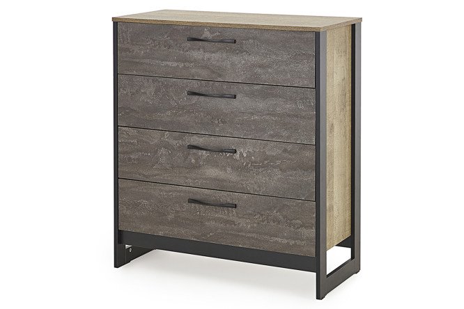 Комод Hugo, в дизайне которого эффектно использовано покрытие разных оттенков и текстур, станет стильным элементом интерьера гостиной, спальни или прихожей. Очень необычно смотрятся опоры в виде рам, благодаря которым изделие выглядит по-настоящему современно. Вместительные выдвижные ящики удобны для хранения документов, бумаги для принтера, компьютерной периферии, столовых приборов и текстиля. Прочная крышка выдерживает вес до 10 кг, на ней можно установить колонки, настольную лампу, красивую вазу с живыми цветами или сухоцветами.
