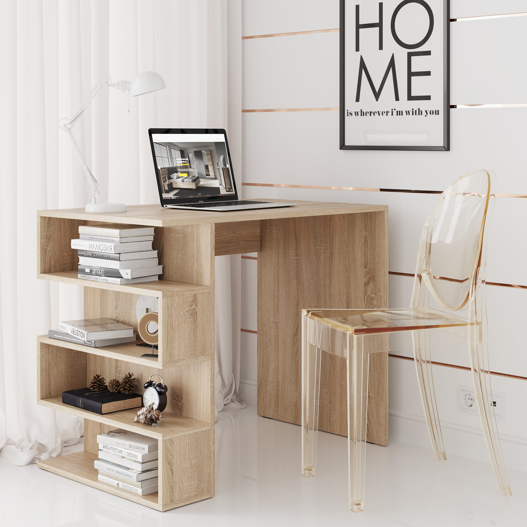 Письменный стол Штерн — это комбинация удобной рабочей поверхности и оригинальной системы хранения в виде встроенного стеллажа. Благодаря оптимальным габаритам модель подойдет как для отдельного кабинета, так и для небольшой рабочей зоны в гостиной, спальне или подростковой комнате.