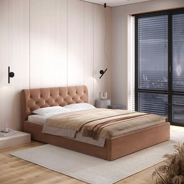 На изголовья кроватей с утяжками устанавливаются стразы или пуговицы.