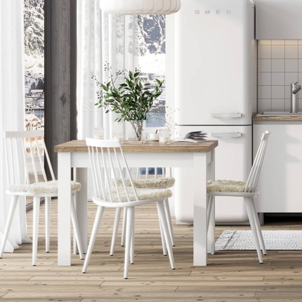"Одри" Стол обеденный. Габариты: 762*980*580мм (в*ш*г). Подстолье ЛДСП Белый. Столешница влагостойкая 38мм "Дуб Эдда".