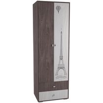 Состоит из: шкафа с 2-мя дверцами, 2-мя стационарными полками, 2-мя съемными полками и одной выдвижной штангой для одежды.