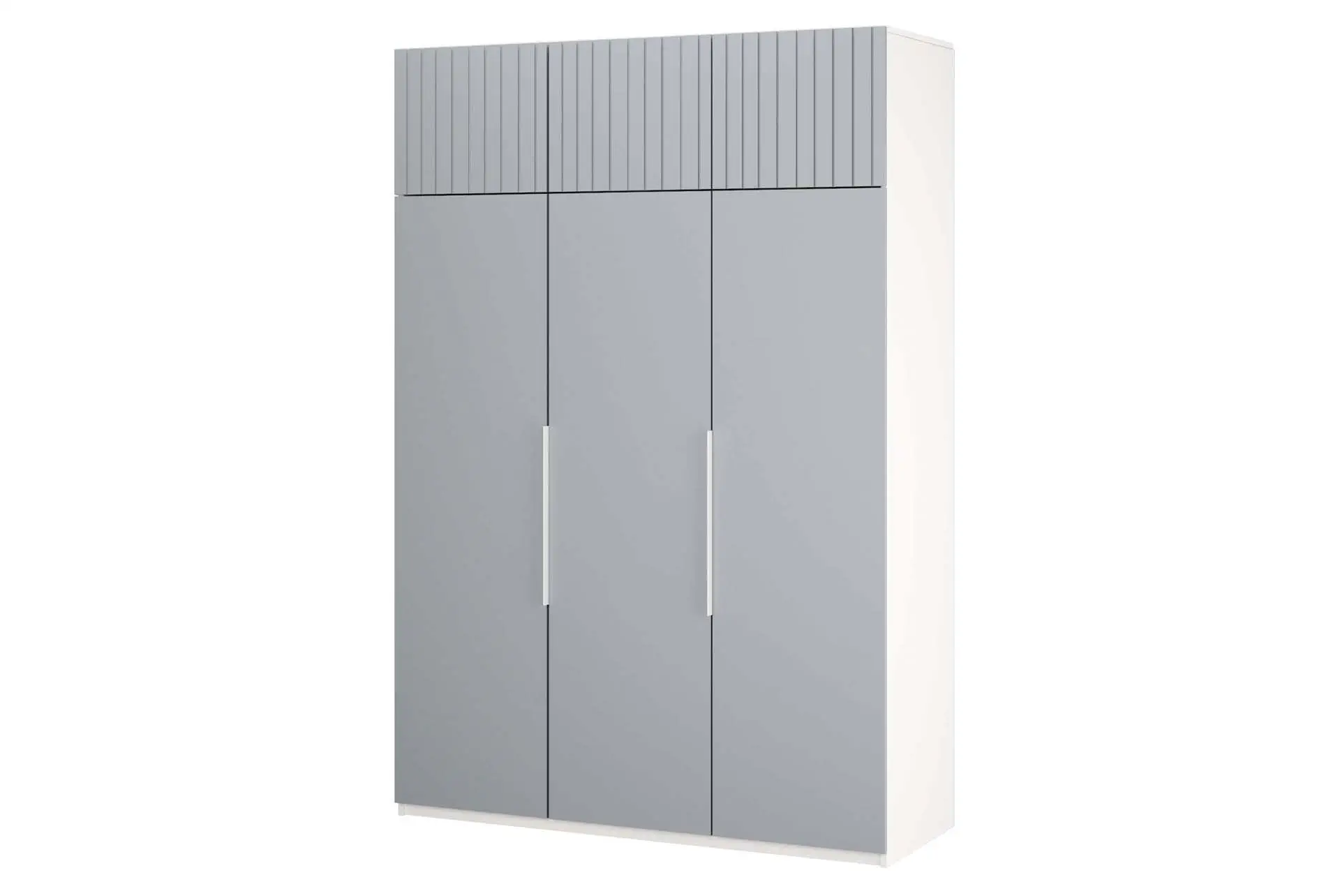 Представляем вам стильный трехстворчатый шкаф в сером цвете. Его петли оснащены доводчиком, что делает открытие и закрытие дверей плавными и бесшумными. А еще, для удобства, мы добавили систему открытия верхних фасадов с помощью Push-to-open. Этот шкаф не только прекрасно впишется в любой интерьер, но и обеспечит вас простотой и комфортом в использовании.