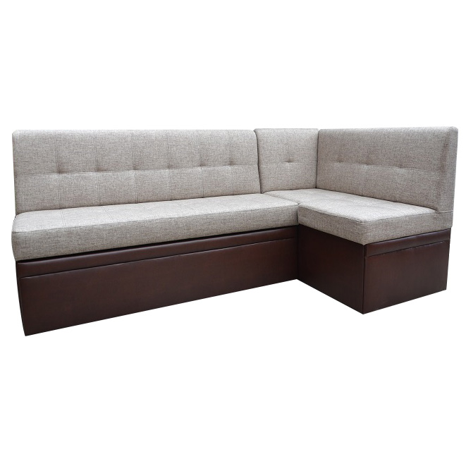 Кухонный угол, за счет выкатного элемента и мех-ма трансформации – «Дельфин» на металлокаркасе, имеет спальное место. Оттоманка дивана откидная и имеет короб для хранения.