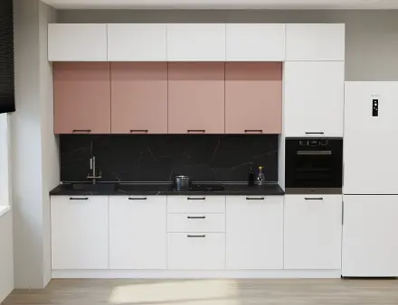 Аликанте 27: Цвет фасада: Шарли Pink, Шарли белый, корпус Серый, столешница 28мм: Каспий черное золото