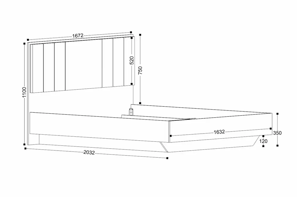 Ширина: 1472/1672 мм | Глубина: 2032 мм | Высота: 1100 мм