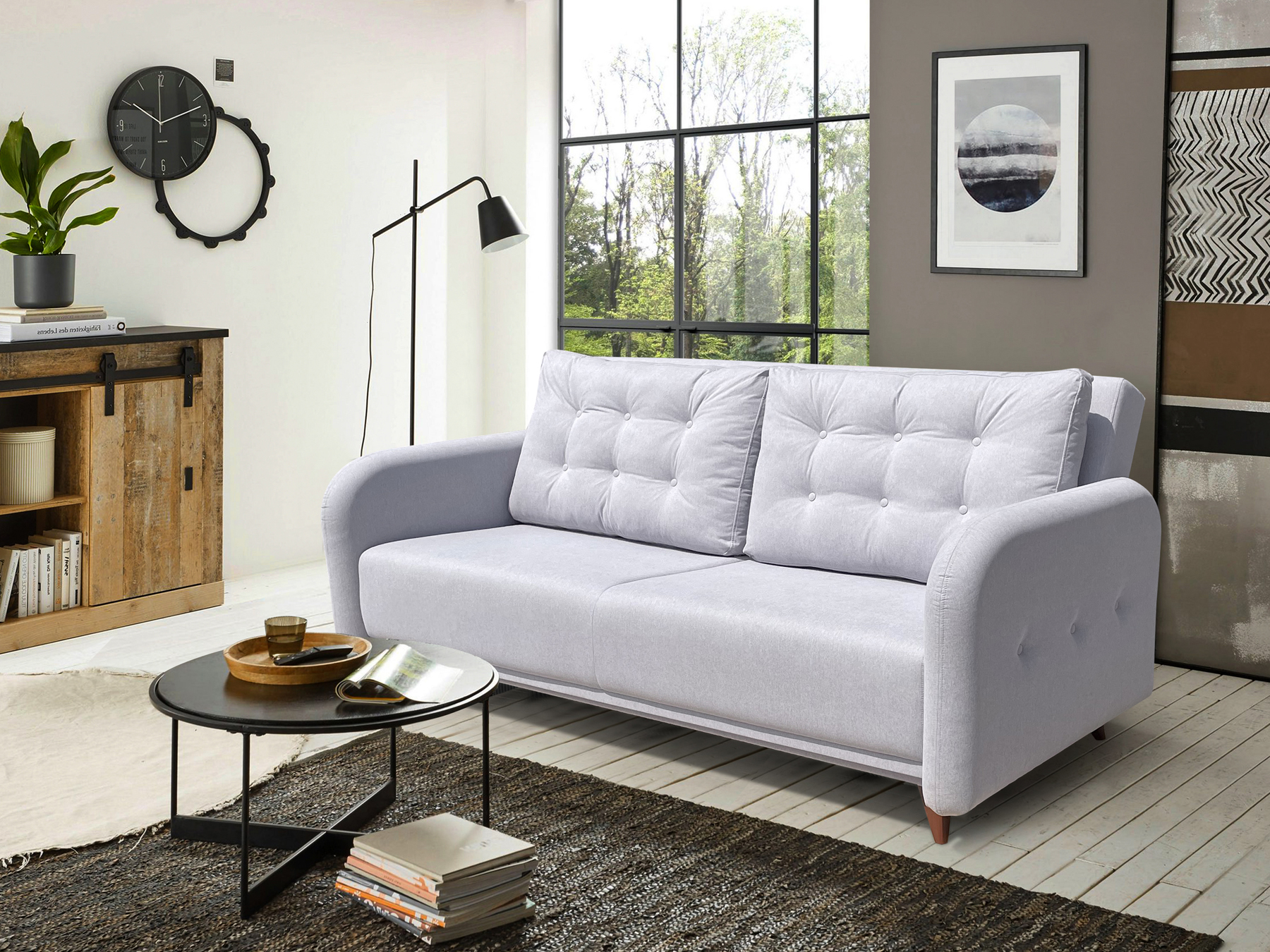 Диван в духе неоклассицизма, с различными вариантами подлокотников, отделки строчек и пуговиц, а также высокими ножками.