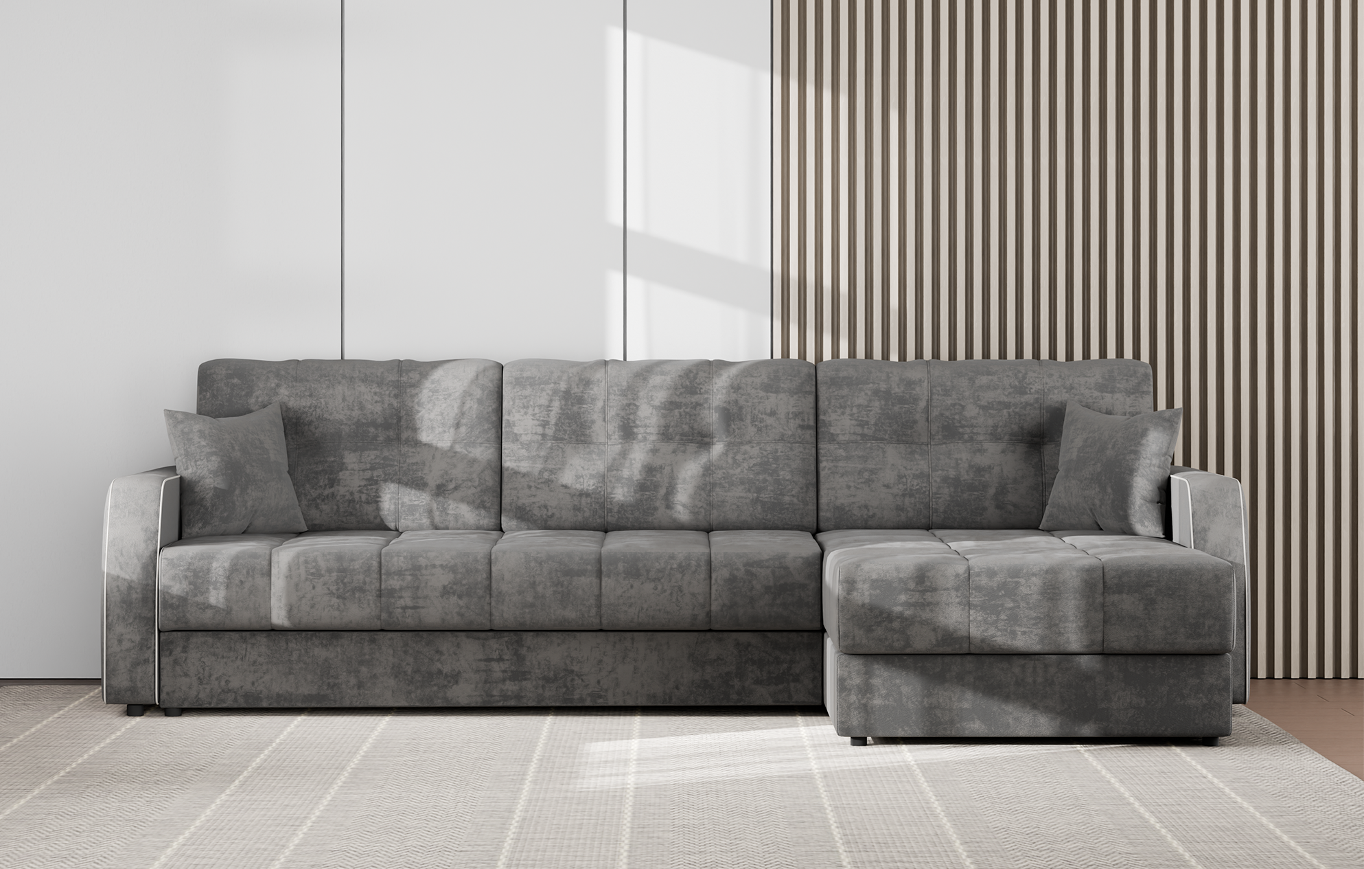 Угловой вариант популярного дивана ЖЕНЕВА впечатляет роскошным внешним видом и отличными потребительскими качествами, претендуя стать любимым местом отдыха для всей семьи.