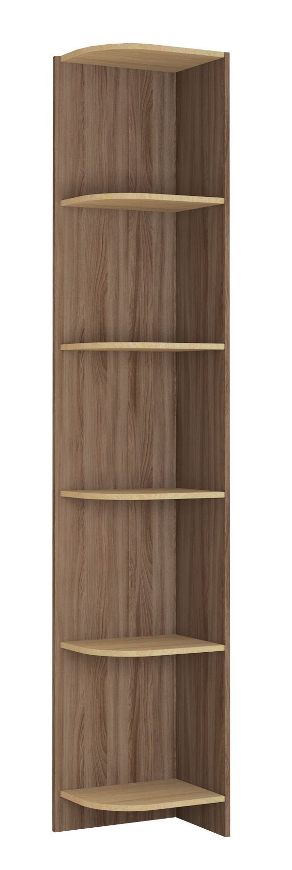 Компактное угловое завершение Орион в виде угловой полки идеально подойдет для современного дизайна комнаты, является завершающим элементом шкафов и стенок. Включает в себя пять открытых полок для размещения сувениров или предметов декора.