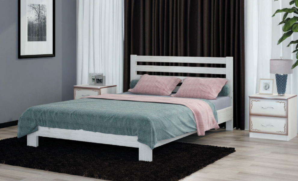 Выполнена из массива сосны, что придает кровати прочность, долговечность и экологичность.
