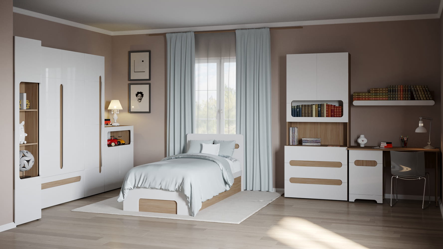 • Содержит в себе всё необходимое для организации пространства детской или молодёжной комнаты.