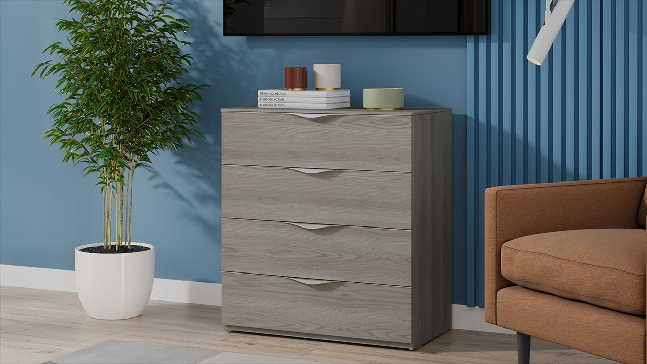 В коллекции представлено несколько вариантов фасадов (ДСП и МДФ в эмали), которые можно использовать как в едином стиле, так и комбинировать между собой. Первый вариант: сборная конструкция из ЛДСП «Хадсон» - верхняя и нижняя деталь имеет разное направление текстур. Второй вариант: верхняя часть фасада ЛДСП «Хадсон», нижняя часть фасада выполнена из МДФ в сером глянцевом покрытии эмалью «Стоун».