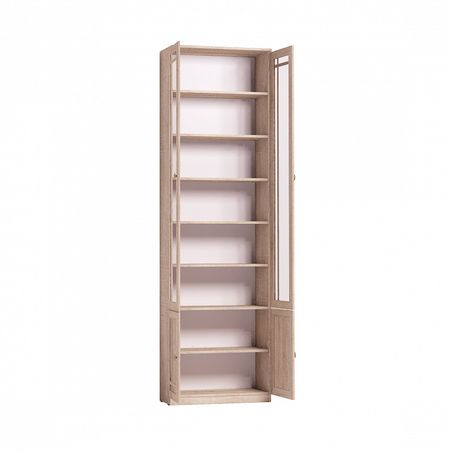 • Комбинация высоких шкафов для книг. Благодаря своей высоте они удивительно ёмкие и вместительные. Предусмотренная регулировка высоты полок позволит поместить книги любого формата. Тонированные стеклянные дверцы защитят содержимое от прямых солнечных лучей и пожелтения страниц. Необходимо дополнительно крепить к стене за подвесы, для устойчивости.