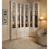 • Угловая комбинация высоких шкафов для книг. Благодаря своей высоте они удивительно ёмкие и вместительные. Предусмотренная регулировка высоты полок позволит поместить книги любого формата. Тонированные стеклянные дверцы защитят содержимое от прямых солнечных лучей и пожелтения страниц. Необходимо дополнительно крепить к стене за подвесы, для устойчивости.