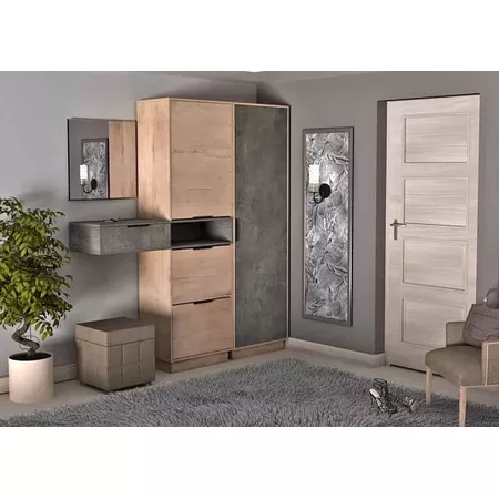 В дизайне мебели для прихожей Лофт Визит-3, используется актуальное сочетание древесных текстур и камня. Разнообразие модулей коллекции позволяет создать функциональный интерьер для помещения любого размера.